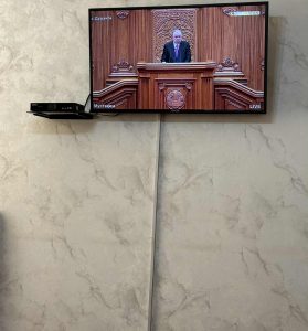 Тамошои дастаҷамъонаи пахши мустақими Паёми Асосгузори сулҳу ваҳдати миллӣ-Пешвои миллат, Президенти Ҷумҳурии Тоҷикистон муҳтарам Эмомалӣ Раҳмон дар Суди ноҳияи Файзобод.